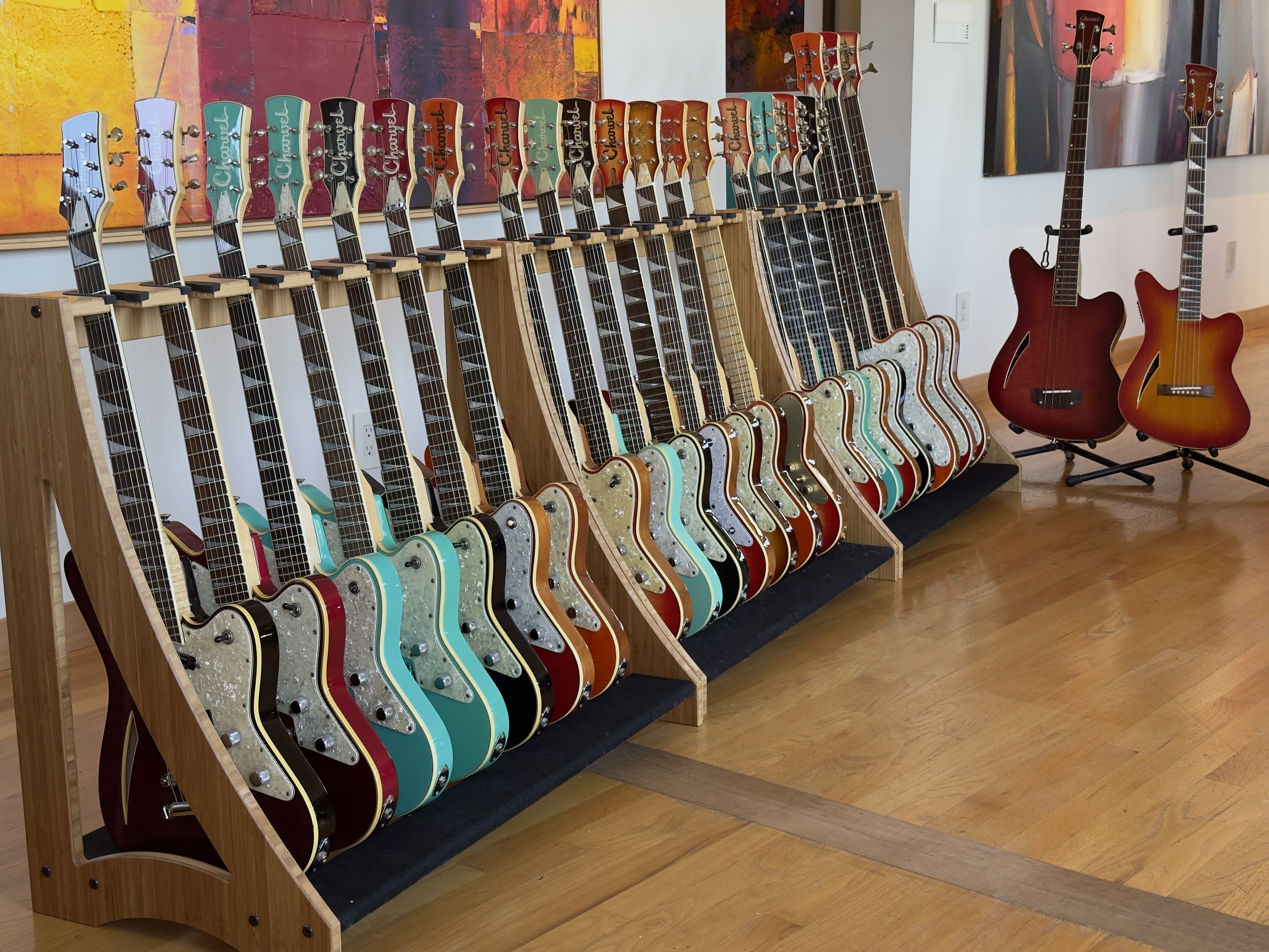 Good news! I finally tracked down a sunburst 12-string to add to my collection- one more to go and I’ll have one each of the original 6 factory colors! I’ll get the sister-wives together for a new family photo, and post it to replace the one above. (It might take me a while to get them all in to the photo studio, so be patient)